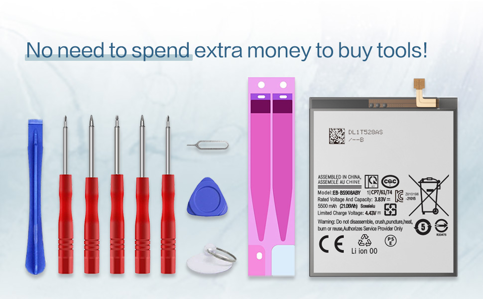Supercharge your Samsung Galaxy S22 Ultra 5G with this 2025 upgraded 5500mAh battery – featuring higher capacity than the original 5000mAh battery! Specifically designed for SM-S908U models, this enhanced battery delivers extended usage time and improved performance. Complete with professional repair tools for easy installation.