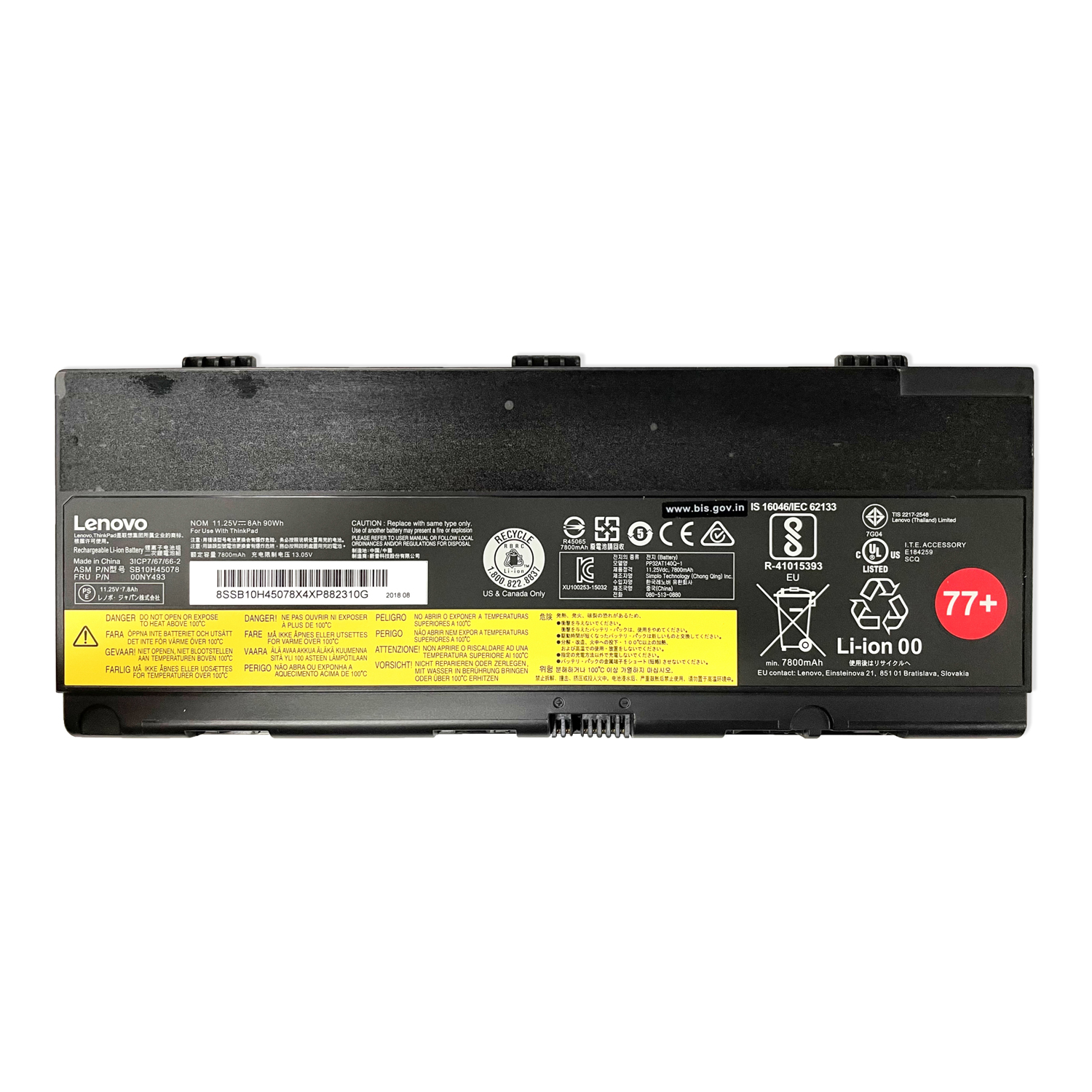 This is a genuine 90Wh (8000mAh, 11.25V) high-performance battery, designed as a direct replacement for part numbers 00NY493 and 01AV477 (77++ capacity rating). It is engineered to restore full, long-lasting power to your Lenovo ThinkPad P50, P51, and P52 mobile workstations (including models 20MM, 20MN, 20HH), ensuring you can tackle demanding tasks without being tethered to an outlet. It is also fully compatible with a range of original part numbers, including L17M6P51, L17L6P51, 01AV495, 01AV496, 00NY490, 00NY491, 00NY492, and 4X50K14091.