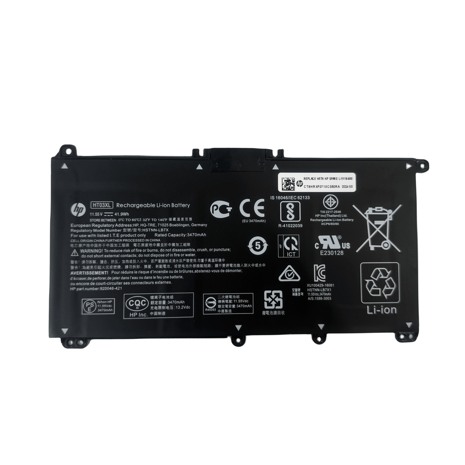 | Compatible with Part Number : | HT03041XL HT03XL L11119-855 L11421-1C1 L11421 -1C2 L11421-2C1 L11421-2C2 L11421-2C3 L11421-2D1 L11421-2D2 L11421-421 L11421-422 L11421-423 L11421-542 L11421-544 L11421-545 TPN-C136 TPN-I133 TPN-I134 TPN-Q207 TPN-Q208 TPN-Q209 TPN-Q210 HSTNN-DB8R HSTNN-DB8S HSTNN-IB80 HSTNN-IB8O HSTNN-LB8L HSTNN-LB8M HSTNN-UB7J |